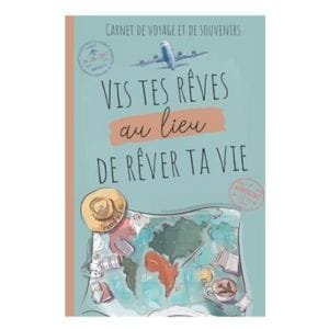 Carnet de voyage “Vis tes rêves au lieu de rêver ta vie “ de Moon Craft conçu pour être utilisé durant 4 voyages différents avec 26 pages pour chaque voyage avec :
